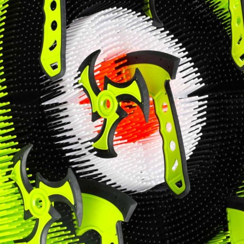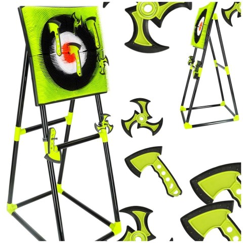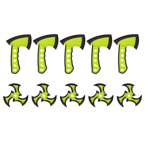 Plastikowe toporki i shuriken'y są obtoczone miękkim silikonem, dzięki czemu rzucanie nimi jest całkowicie bezpieczne. Każdy z akcesoriów jest starannie wykonany, by zapewnić autentyczny wygląd i ekscytującą zabawę. Stabilny, plastikowy stojak z uchwytami umożliwia łatwe przechowywanie akcesoriów i szybkie przygotowanie zestawu do kolejnej sesji treningowej. Dzięki temu Twoje dziecko może doskonalić swoje umiejętności w każdej chwili.