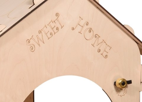Aktywny Domek "SWEET HOME" wyposażony w tablicę magnetyczno- kredową (wymiar tabl.: szer.:55 x wys.: 86 cm) oraz stolik (dł: 76cm, szer.: 45 cm) do własnego montażu. Wyposażenie: komplet literek magnetycznych, 4 szt. cottonów, białą kredę oraz gąbkę. Zestaw nie zawiera baterii (2 szt. AA).
