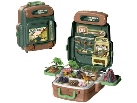 • Duży Zestaw Dinozaurów W Plecaku Figurki W Walizce DINOZAURY Wulkan Akcesoria 30 El.