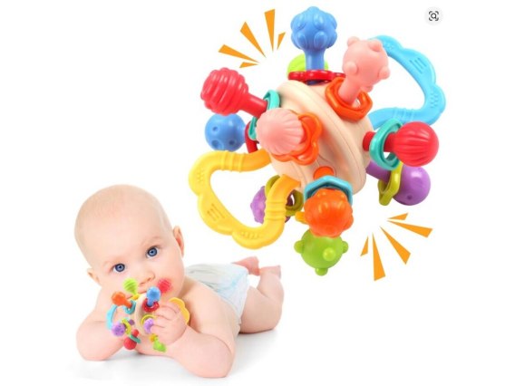 Zabawka została zaprojektowana z myślą o małych dłoniach niemowląt. Dzięki temu jest łatwa do chwytania i bezpieczna dla dzieci. Różnorodność kształtów i kolorów przyciąga uwagę oraz stymuluje rozwój motoryczny i sensoryczny.