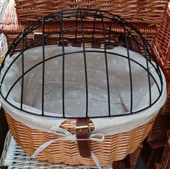 Kosz jest wykonany z wysokiej jakości wikliny, co gwarantuje jego wytrzymałość i wieloletnie użytkowanie. Piękny, naturalny wygląd wikliny w połączeniu z materiałową wyściółką nadaje mu niepowtarzalnego charakteru. Metalowa kratka zapewnia Twojemu pupilowi bezpieczeństwo podczas jazdy, chroniąc go przed wypadnięciem.