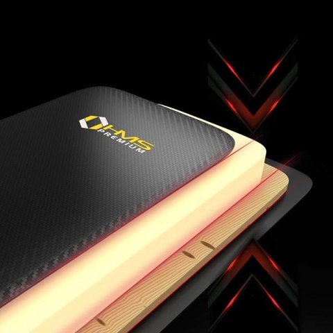 Ławka jest nie tylko wygodna i funkcjonalna, ale także stylowa. Połączenie czarnego karbonowego materiału z żółtymi haftowanymi elementami, daje świetny efekt wizualny, który jest charakterystyczny dla marki HMS PREMIUM.