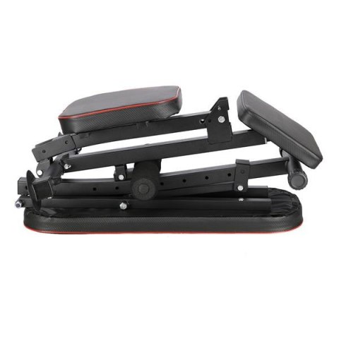 Ławka jest nie tylko wygodna i funkcjonalna, ale także stylowa. Połączenie czarnego karbonowego materiału z czerwonymi obszyciami, daje świetny efekt wizualny, który jest charakterystyczny dla marki HMS.