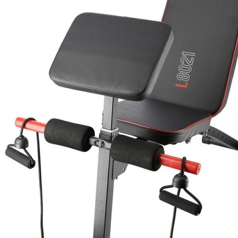 Ławka treningowa L8021  dzięki swojej wielofunkcyjności doskonale sprawdzi się w każdej domowej siłowni. Ławka L8021 została wyposażona w regulowany modlitewnik, a także ekspandery montowane z przodu podstawy . Przemyślana konstrukcja ławki L8021 pozwala na wykonywanie wielu różnorodnych ćwiczeń . Dzięki 7 stopniowemu systemowi nachylenia oparcia umożliwia trening w nachyleniu od -20 do 90 . Ławka jest nie tylko wszechstronna, ale również zajmuje niewiele miejsca co sprawia, że może być podstawą każdej domowej siłowni.