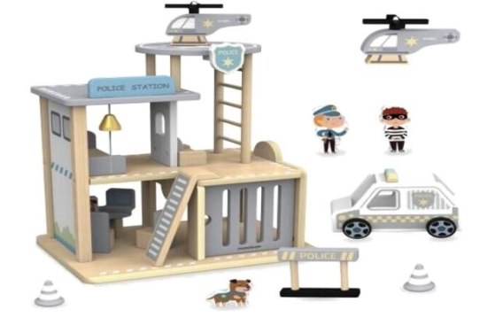 w całości wykonany z drewna - posterunek policji oraz akcesoria są wykonane z wysokiej jakości drewna, aby Twoje dziecko mogło jak najdłużej cieszyć się zabawką