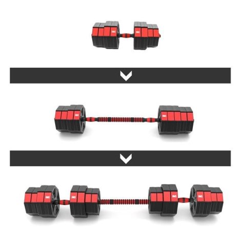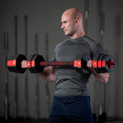 Dzięki specjalnemu przedłużeniu, zyskujemy możliwość złączenia dwóch krótkich gryfów, w jeden długi. To innowacyjne rozwiązanie, znacznie rozszerza wachlarz możliwości ćwiczeniowych. Zyskujemy bowiem sztangę, z którą wykonamy ćwiczenia nie możliwe lub nie wygodne, do wykonania z hantlami. Decydując się na jeden produkt, w rezultacie otrzymujemy dwa.