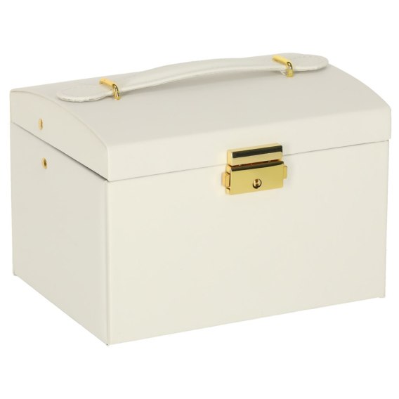 Jeśli posiadasz kolekcję biżuterii, ten duży kuferek będzie dla Ciebie niezastąpiony. Specjalnie zaprojektowane przegródki na pierścionki, sekcje na kolczyki, bransoletki i naszyjniki pozwalają na przechowywanie różnych elementów w uporządkowany sposób. Ta stylowa szkatułka jest lekka, poręczna i zamykana na kluczyk, co zapewnia bezpieczne przechowywanie cennych dodatków.