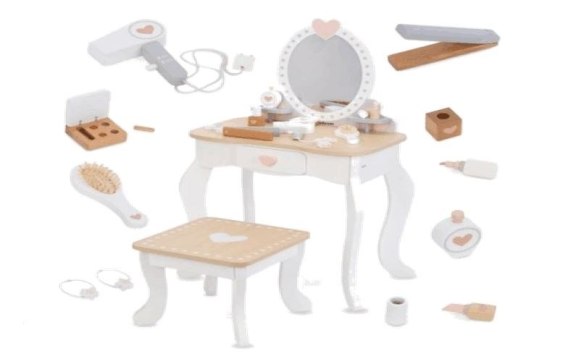 jakość wykonania na najwyższym poziomie - do stworzenia toaletki wykorzystano trwałe i solidne drewno, dzięki czemu zabawka dostarczy dziecku radości przez lata