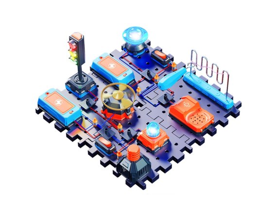 Zestaw przenosi naukę o obwodach elektrycznych z nudnej wiedzy do trójwymiarowego świata nieskończonych przygód. Gdy dziecko wszystko prawidłowo połączy będzie miało możliwość uruchomić różne elementy zestawu.