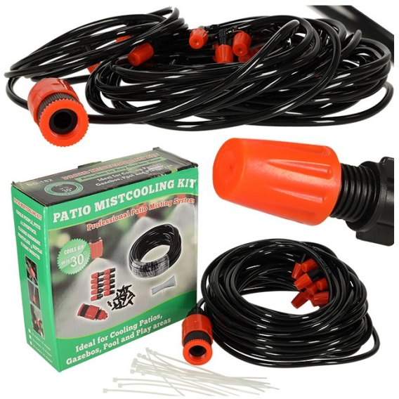 Przewód zraszacza wystarczy podłączyć do węża ogrodowego lub kranu, aby móc się cieszyć delikatną mgiełką ochładzającą Twój dzień!