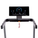 Posiada obszerną powierzchnię biegową o wymiarach 142 x 50 cm oraz zaawansowany system amortyzacji składający się z 6 wewnętrznych poduszek, który minimalizuje obciążenie stawów i zwiększa komfort podczas długotrwałych treningów. Funkcja Soft Drop ułatwia składanie i rozkładanie bieżni, a dzięki kółkom transportowym sprzęt można łatwo przemieszczać i przechowywać. Po złożeniu bieżnia zajmuje mniej przestrzeni, co czyni ją praktycznym rozwiązaniem.