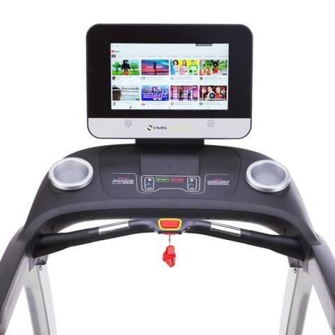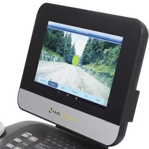 Duży pas biegowy zapewniający komfortową przestrzeń do ćwiczeń amortyzuje system C-CD: tłumiących sprężyn anti-shock oraz systemu dźwigni, które gwarantują lekkość i sprężystość biegu. Bieżnię HMS PREMIUM BE6000 charakteryzuje szeroki zakres regulacji kąta nachylenia pasa biegowego oraz prędkości, które otwierają dostęp do bardzo wszechstronnego treningu. BE6000 posiada duży 15,6" ekran dotykowy (pojemnościowy - działanie ekranu jak w smartfonach). Urządzenie ma możliwość ustawienia różnych programów treningowych, dzięki którym swobodnie dopasujemy trening do swoich oczekiwań. Aby urozmaicić swój trening, możemy wybrać opcję biegu w terenie. Wybieramy na ekranie dogodny dla nas teren, następnie po starcie, na ekranie będzie widoczna symulacja naszego biegu w danym terenie. Sprawi to wrażenie, jakbyśmy prowadzili nasz trening np. w lesie.