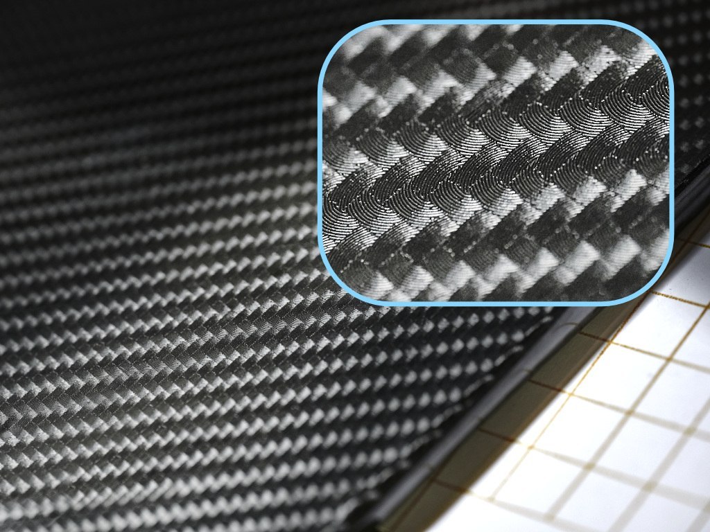 • posiada strukturę, która wygląda jak prawdziwe włókno węglowe.