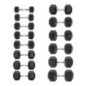 Gumowane hantle są odporne na uderzenia, posiadają ergonomiczny kształt. Z kolei pewny uścisk gwarantuje radełkowana rączka.