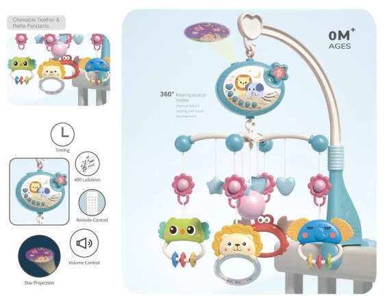 Wygodny pilot pozwoli kontrolować karuzelę bez konieczności nachylania się nad łóżeczkiem! Idealnie sprawdzi się, jeśli nie chcesz zbudzić śpiocha swoją obecnością!