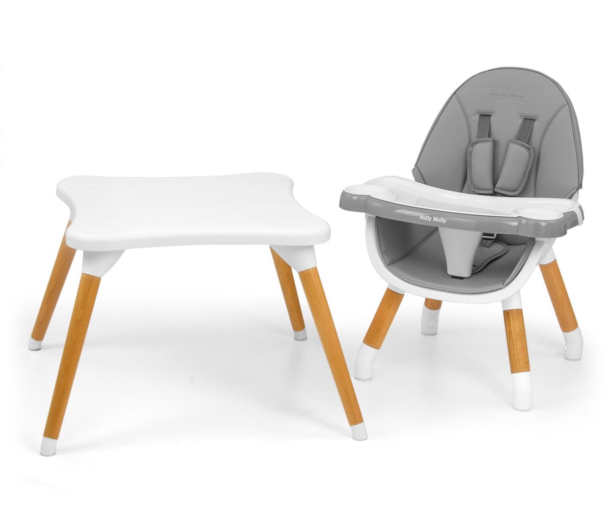 Nowoczesne i stylowe krzesełko do karmienia dzieci 2w1 Malmo. Wykonane z najwyższej jakości materiałów - łączy w sobie funkcjonalność oraz nowoczesny design. Krzesełko w wersji wysokiej przeznaczone dla niemowląt od 6 miesiąca życia do 36 miesięcy życia lub osiągnięcia wagi 15 kg, a w wersji niskiej krzesełko plusstoliczek dla dzieci od 3 do 6 roku życia lub osiągnięcia wagi 25 kg.