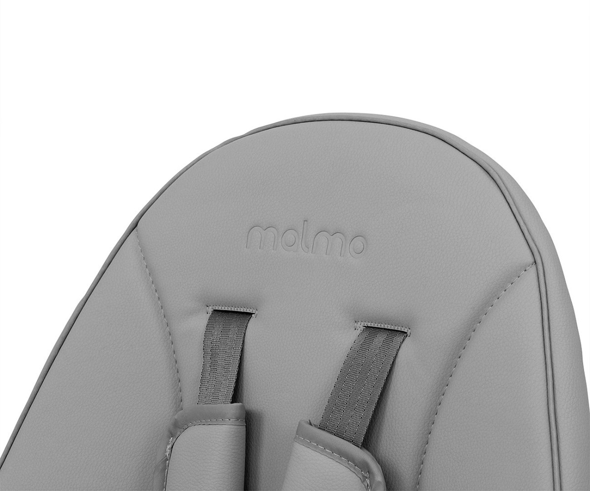 5-punktowe pasybezpieczeństwa wyposażone w szerokie i miękkie osłonki na ramiona, zabezpieczają dziecko przed otarciami. Tapicerka krzesełka Malmo wykonana z ekoskóry jest odporna na zabrudzenia i łatwa w utrzymaniu czystości. Tacka posiada wgłębienie, które zapobiega zsunięciu się przedmiotów na niej umieszczonych.