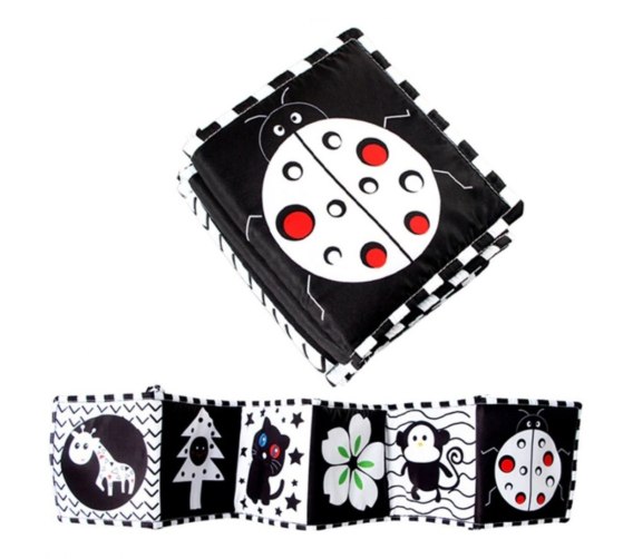 Magiczna materiałowa książeczka w kontrastowe wzory to świetna propozycja dla dzieci dopiero poznających świat.