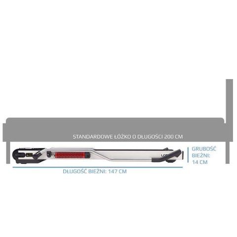 Bieżnia LOOP15, została wykonana z najwyższej jakości materiałów, a dodatkowo przyciąga nowoczesnym designem. Jej niewątpliwym atutem są wymiary, po złożeniu kolumn, produkt ma zaledwie 14 cm wysokości. Bez problemu, zmieści się np. pod łóżko. Przestawianie sprzętu, również nie będzie problemem, dzięki zamontowanym kółkom transportowym, bez specjalnego wysiłku ustawimy bieżnie w dogodnym miejscu.