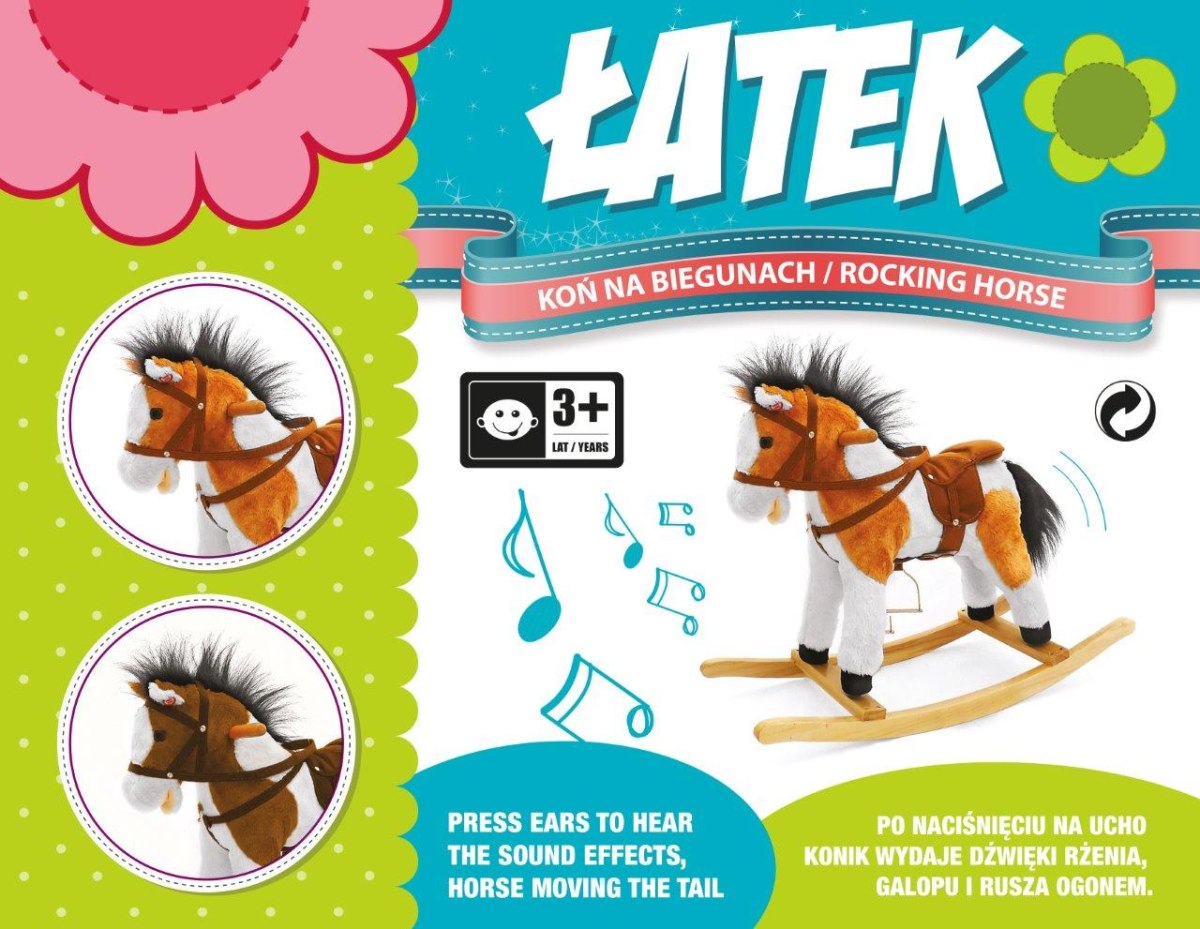 Konik na biegunach Łatek. Wyjątkowy konik na biegunach, każde dziecko marzy o takiej zabawce, oprócz tradycyjnej funkcji bujania, posiada szereg atrakcyjnych opcji, które umilą i uatrakcyjnią zabawę. Konik posiada drewniane bujaki oraz drewniane uchwyty.