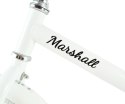 Wytrzymałe pompowane opony na białych felgach, miękkie i ciche przy jeździe. Ergonomiczne siodełko z miękkim wypełnieniem oraz możliwością regulacji wysokości sprawia, że rowerek rośnie razem z dzieckiem. Marshall posiada łożyskowaną skrętną kierownicę z możliwością regulacji wysokości. Antypoślizgowe, miękkie gumowe rączki zapewniają pewny chwyt i wygodne prowadzenie. Klasyczna i ergonomiczna konstrukcja rowerka zapewnia trwałość i wygodę użytkowania. Stalowa rama rowerka zapewnia większą odporność na przeciążenia. Rowerek dostosowany do długotrwałej eksploatacji przez najmłodszych.