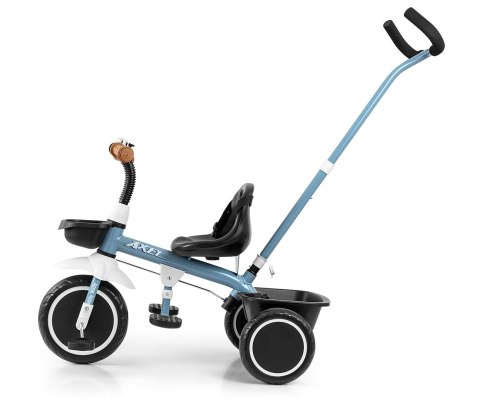 Rowerek AXEL posiada odczepianą rączkę dla rodzica oraz koszyk na zabawki.