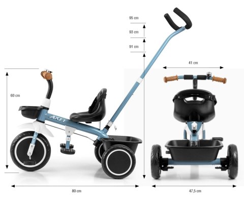 Rowerek trójkołowy AXEL został stworzony z myślą o komforcie i bezpieczeństwie maluszków, oraz wygodzie rodziców. Idealne rozwiązanie dla aktywnych Smyków, które nudzi przejażdżka w spacerówce.