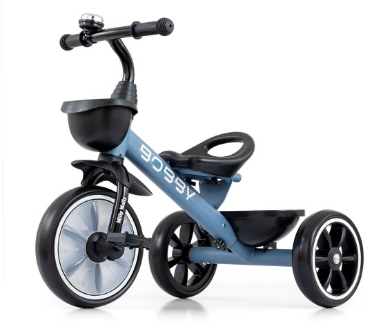 Rowerek trójkołowy BOBBYzostał stworzony z myślą o komforcie i bezpieczeństwie maluszków, oraz wygodzie rodziców. Idealne rozwiązanie dla aktywnych Smyków, które nudzi przejażdżka w spacerówce. Bobby to stabilny i bezpieczny rowerek dla Twojego dziecka, posiada ponadczasową konstrukcję i wygodne wyprofilowane siedzisko. Zabezpieczenie przedniego koła przed wkręceniem się nóżki Dziecka, gdy nasz młody cyklista naciska na pedały. Kierownica rowerka jest wypinana na przycisk umieszczony od jej czoła.