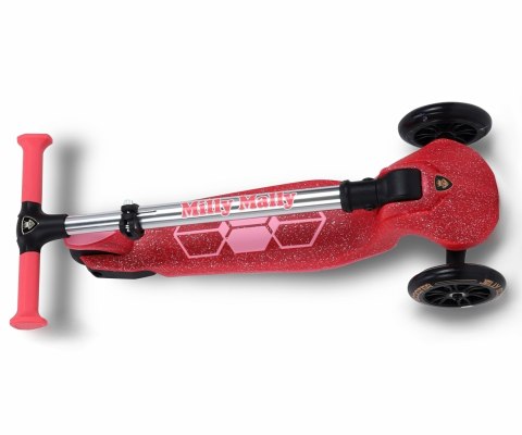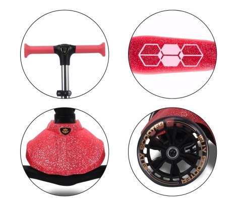 To, co wyróżnia JELLY, to świecące przednie koła LED oraz dodatkowe podświetlenie podestu wzdłużne linie po bokach, które razem tworzą prawdziwie spektakularne świetlne show podczas jazdy - idealne na wieczorne wyprawy! Brokatowe wykończenie zaś sprawia, że hulajnoga mieni się efektownie w słońcu