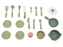 Do dyspozycji małej gospodyni/gospodarza jest cała gama naczyń, garnków i sztućców. Nie zapomniano również o warzywach, owocach czy opakowaniach kartonowych imitujących produkty mleczne.