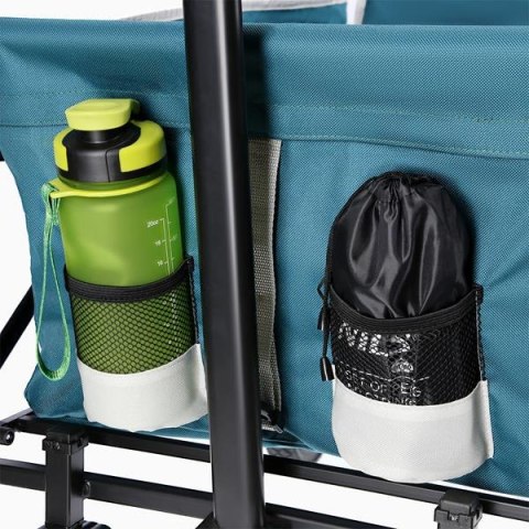 Jego dodatkowe funkcje, takie jak łatwość składania i praktyczne zapinanie do przenoszenia, podnoszą funkcjonalność tego wózka na wyższy poziom. Bez trudu zmieści się w bagażniku samochodu, nie zabierając wiele miejsca, i będzie gotowy do użycia w ciągu kilku sekund. Dzięki prostej ale eleganckiej kolorystyce będzie stylowym dodatkiem do Twojego turystycznego wyposażenia.