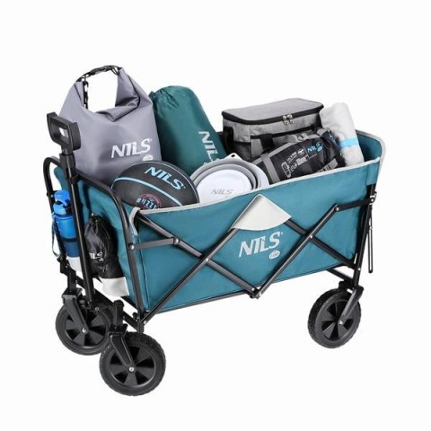 WÓZEK TURYSTYCZNY 125l NC1606 marki NILS CAMP - uniwersalny partner w każdej przygodzie. Niezależnie od tego, czy planujesz rodzinne wakacje na plaży, pełen relaksu weekend na kempingu, czy energiczne wyjście na festiwal muzyczny - ten wózek to kwintesencja funkcjonalności i stylu, stworzony, aby towarzyszyć Ci w najróżniejszych miejscach i sytuacjach.