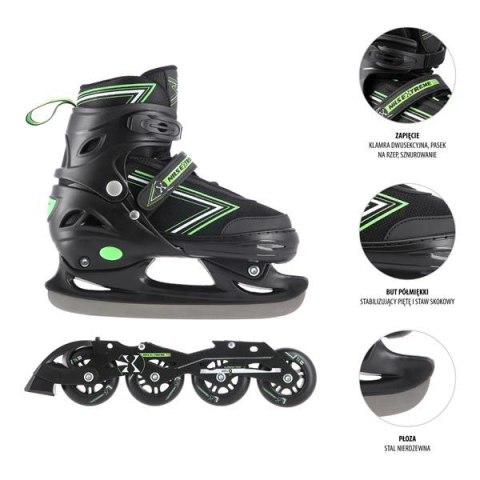 NH11912 A 2w1 CZARNO-ZIELONE ROZM. L(39-42) ŁYŻWOROLKI Z WYM. PŁ. HOKEJOWĄ NILS EXTREME