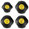 Piłka z uchwytem NKU HMS to połączenie zalet treningu z hantlami i piłkami lekarskimi. Dzięki jej wygodnym, antypoślizgowym uchwytom, możemy swobodnie wykonać przy jej użyciu, ćwiczenia na każdą grupę mięśniową. Będą ciekawą alternatywą dla treningu z hantlami. Wykonamy z ich udziałem, wszystkie ćwiczenia co ze zwykłą piłką lekarską, jednak dzięki uchwytom, ćwiczenia będą nieco łatwiejsze. Znajdą swoje zastosowanie, w treningu każdego rodzaju. Dzięki nim wzrost siły, wytrzymałości, zwiększenie koordynacji i ruchomości w stawach nie będzie problemem. Często wykorzystywane są również, w rehabilitacji po urazach. Piłki wykonane są z bardzo trwałej gumy odpornej na uderzenia czy tarcie, daje to gwarancje długotrwałego użytkowania. NK HMS występują w obciążeniach 3, 5, 7, 10 kg.