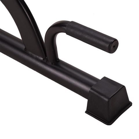 PWL8306 HMS PREMIUM to poręcz wielofunkcyjna. Jej zastosowanie, skupia się na wykonywaniu pompek na poręczach, czyli tzw. dipów oraz pompek klasycznych. Zarówno dipy, jak i klasyczne ugięcia ramion w podporze, bardzo mocno angażują mięśnie klatki piersiowej, tricepsy oraz przedni akton mięśni naramiennych. Dzięki dolnym uchwytom, możliwe jest wykonanie, bardzo mocnego ugięcia ramion w trakcie wykonywania pompki. Dzięki temu, dużo mocniej rozciągamy mięsień w trakcie każdego ruchu, co w rezultacie wpływa na jego szybszy wzrost. Na górnych poręczach, od ułożenia ciała zależy, czy mocniej zaangażujemy do pracy klatkę piersiową, czy triceps. Jeśli w trakcie ćwiczenia, pochylimy się do przodu, najmocniej zaangażowanym mięśniem będzie klatka piersiowa, jeśli jednak utrzymamy wyprostowaną pozycję, to skupimy się na tricepsie.