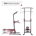 PWL8324 HMS, pozwoli wykonać ćwiczenia na wszystkie grupy mięśniowe górnych partii ciała. Konstrukcja produktu umożliwia wykonanie bardzo dużej ilości ćwiczeń. Użytkownik ma do dyspozycji drążek, poręcze do tzw. dipów, ławeczkę z obszernymi możliwościami regulacji jej ustawień, podpórki do pompek, a także haki na których można umieścić sztangę. Wszystkie elementy pozwolą wykonać pełny, obszerny trening na klatkę piersiową, plecy, barki, biceps, triceps oraz brzuch.