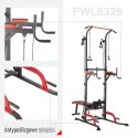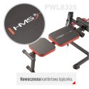 PWL8325 HMS, każdy dopasuje do swoich preferencji oraz do konkretnego ćwiczenia. Drążek ma regulowaną wysokość, ławeczkę można ustawić na dwa sposoby. Do dyspozycji mamy ustawienie skośne w dół do treningu mięśni brzucha oraz ustawienie poziome.
