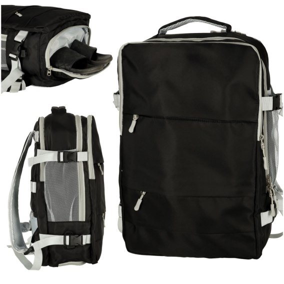 Duży placek podróżny - idealny zarówno do codziennego użytku, jak i na podróż! Plecaka można używać jako bagażu podręcznego w większości linii lotniczych. Zewnętrzne pasy kompresyjne umożliwiają ściśnięcie spakowanych rzeczy. Posiada wiele kieszeni, w tym specjalną kieszeń buty, dzięki czemu bez problemu pomieścisz wszystkie niezbędne rzeczy. Posiada port USB i kabel USB dla łatwego ładowania telefonu poprzez powebank.