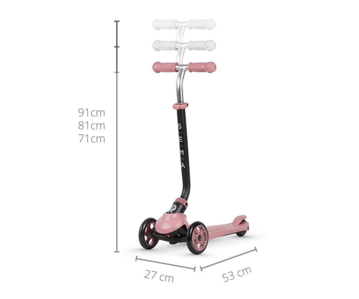 Gdy mały odkrywca rusza by odkrywać świat... Hulajnoga SEMA dopasuje się do wieku i potrzeb dziecka. Należy ona do rodziny produktów GROW UP - rośnie wraz z dzieckiem. SEMA, to idealne rozwiązanie dla aktywnych maluszków, które są w ciągłym ruchu. To nie tylko hulajnoga, to także jeździk dla dzieci w wieku od trzecich urodzin, ale także dotrzyma kroku dziecku w kolejnych etapach rozwoju jako hulajnoga balansowa.