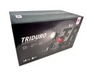 Rowerek trójkołowy Triduro o wyglądzie motocykla, ma wyjątkową ramę, która imituje zbiorniki paliwa jak w prawdziwym motorze. Ergonomiczna konstrukcja, solidna metalowa rama i gumowe uchwyty na kierownicę zapewniają maluchom pewny chwyt podczas zabawy. Kierownica rowerka jest wyprofilowana jak w motocyklu co dodaje charakteru i pobudza wyobraźnię dziecka. Lampa Triduro świeci się za pomocą 7 diod, które zaświeca się za pomocą przycisku na obudowie lampy.