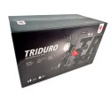 Rowerek trójkołowy Triduro o wyglądzie motocykla, ma wyjątkową ramę, która imituje zbiorniki paliwa jak w prawdziwym motorze. Ergonomiczna konstrukcja, solidna metalowa rama i gumowe uchwyty na kierownicę zapewniają maluchom pewny chwyt podczas zabawy. Kierownica rowerka jest wyprofilowana jak w motocyklu co dodaje charakteru i pobudza wyobraźnię dziecka. Lampa Triduro świeci się za pomocą 7 diod, które zaświeca się za pomocą przycisku na obudowie lampy.