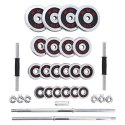 STC50 to zestaw dwóch sztangielek z wymiennym obciążeniem oraz skręcanego długiego gryfu.