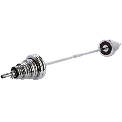 Wysokiej jakości chromowana stal daje gwarancje dużej wytrzymałości, a co za tym idzie możliwości użytkowania sprzętu przez lata. Zaciski oraz idealnie dopasowana średnica otworu talerzy, ułatwiają szybką zmianę obciążenia, a zarazem pewne i stałe ułożenie na gryfie. Zaciski są gwintowe, jednak posiadają dodatkowe wzmocnienie, w postaci dokręcanej śruby. Dzięki temu, obciążenie w żaden sposób nie przesuwa się podczas ćwiczeń.