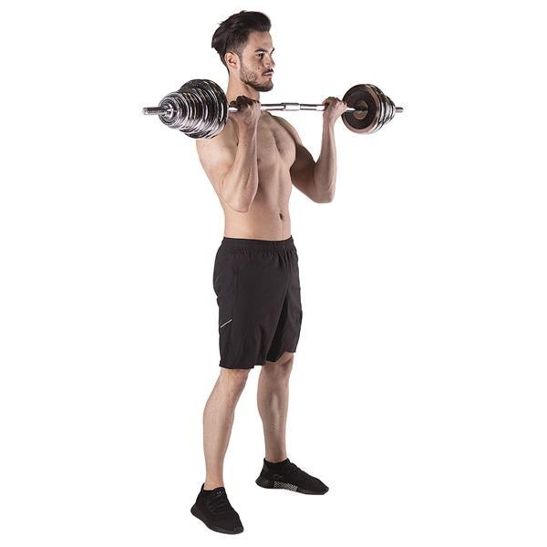 Sztangielka z wymiennym obciążeniem, to klasyka, a zarazem niezbędnik każdej domowej siłowni. W połączeniu z długim gryfem daje niezliczone możliwości ćwiczeniowe.
