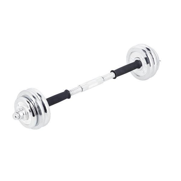 Wysokiej jakości chromowana stal daje gwarancje dużej wytrzymałości, a co za tym idzie możliwości użytkowania sprzętu przez lata. Zaciski oraz idealnie dopasowana średnica otworu talerzy, ułatwiają szybką zmianę obciążenia, a zarazem pewne i stałe ułożenie na gryfie. Zaciski są gwintowe, jednak posiadają dodatkowe wzmocnienie, w postaci dokręcanej śruby. Dzięki temu, obciążenie w żaden sposób nie przesuwa się podczas ćwiczeń.