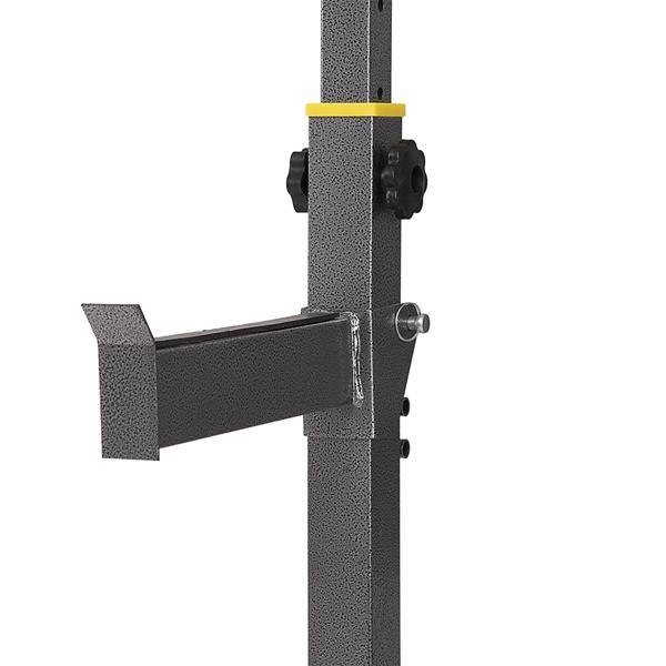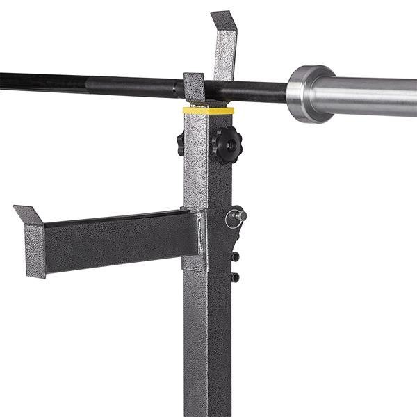 STR18 HMS to wielofunkcyjny stojak pod sztangę. Możliwość konfiguracji wysokości i szerokości stojaka sprawiają, że może być wykorzystany do przeróżnych ćwiczeń. Bez problemu wykonamy przysiad ze sztangą, a po dostawieniu ławeczki wyciskanie leżąc. Dopasowanie produktu do konkretnego wzrostu nie będzie problemem, dzięki szerokiemu wachlarzowi zmiany ustawienia wysokości. Każdy trenujący w trakcie konkretnego ćwiczenia lubi po swojemu ułożyć dłonie na sztandze. Możliwość rozsuwania stojaka na szerokość zapewni możliwość idealnego rozstaw chwytu.