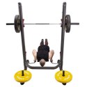 Suwnica X3 powstała z materiałów najwyższej jakości. Jest stabilnym urządzeniem, którego maksymalne dopuszczalne obciążenie, wynosi 136 kg. Dzięki stojakom, zamontowanym z tyłu produktu, z przechowywaniem talerzy obciążeniowych, nie będzie problemu. Radełkowany gryf, świetnie leży w dłoni, a dzięki zaciskom i idealnie dobranej średnicy kołnierza gryfu, talerze nie kołyszą się podczas ćwiczeń.
