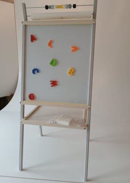 Jedna strona tablicy jest kredowa, idealna do rysowania i pisania kredą, a druga magnetyczna, umożliwiająca zabawę z magnesami w kształcie liter. Dodatkowo tablica wyposażona jest w liczydło, które pomaga dziecku zrozumieć podstawy matematyki, oraz rozwijaną rolkę papieru do malowania jak na zwykłych kartkach.