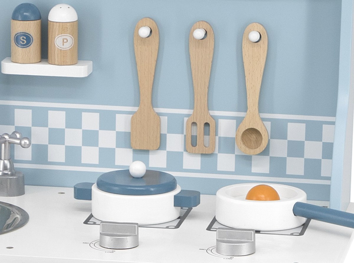 Naczynia możesz umyć w zlewie i ponownie gotować do woli. Kuchenka wspaniale wzbogaci posiadane naczynia i zestawy do krojenia - które w dowolny sposób można ze sobą łączyć. Z pewnością mama pożyczy małemu kucharzowi kilka foremek do babeczek i nie tylko.