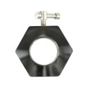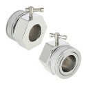 Zaciski wykonane są z litej, polerowanej stali. Użycie ich nie wymaga żadnych narzędzi, dzięki zawleczce śrubę dokręca się w łatwy sposób. Ich budowa opierająca się na krótkim korpusie, zostawia dużo miejsca na rękawie obciążeniowym, dla maksymalnego obciążenia gryfu.